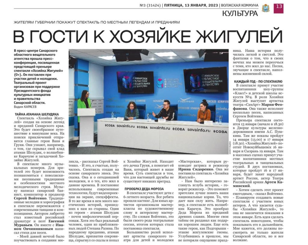 Читайте материал в 3 выпуске газеты «Волжская коммуна» о пресс-конференции, посвящённая премьере нашего мюзикла «Хозяйка Жигулей»